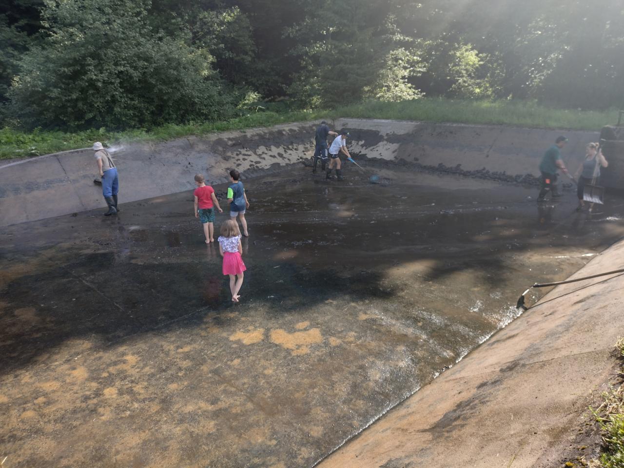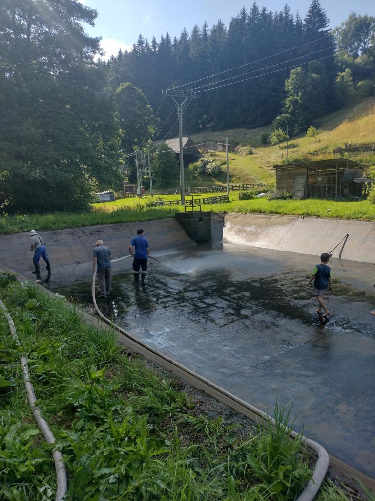 A když už se umývalo, tak jsme se pustili i do požární nádrže. Opět je krásně čistá a láká ke koupačce. Pokud ji někdo využije ke smočení, mějte na paměti, že se jedná o požární nádrž, nikoliv veřejné (obecní) koupaliště a je třeba dbát opatrnosti a myslet na svou bezpečnost.