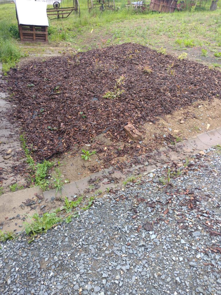 Zejména občanům docházejícím do čekárny a ordinace lékaře jsme chtěli zlepšit výhled ven. Za obecním úřadem jsme upravili část svahu, zasadili několik šeříků, aby zakryly, co nechceme vidět a v květu voněly všude okolo. V pásu pod šeříky jsme vyseli "jarní louku". Směs trav a květin, které budou ozdobou po celý rok. Ve spodním pásu jsou vysázené různé druhy ovocných keříků - jahody, borůvky, rybízy, angrešty, maliny atd. To zase až půjdou děti na procházku, aby si měli čeho zobnout. Celé jsme to zkrášlili mulčovací kůrou. Jenže neposlušné slepičky, které se po návsi samovolně pohybují, nám naši snahu kazí a kůru rozhrabávají. Ale třeba se někdy dočkáme, slepičky zůstanou tam, kde mají, a kůra bude také na svém místě.