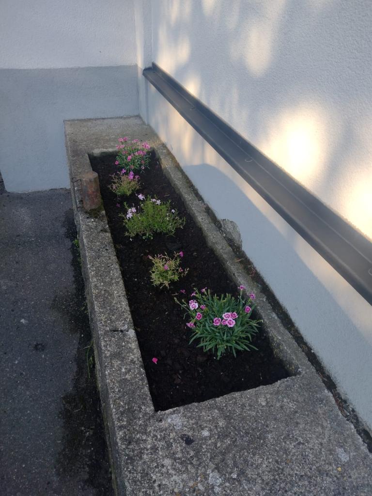 Jaro s námi dělá divy, a tak jsme pořídili jarní květinovou výzdobu. Rozkvetlo nám i korýtko vedle dveří do garáže.