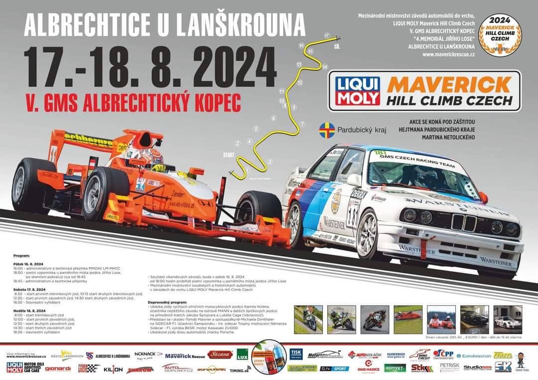 17. - 18.8.2024 proběhne mezinárodní závod automobilů do vrchu GMS Albrechtický kopec 2024. S tímto závodem souvisí i kompletní uzavírka silnice č. I/43 směrem na Štíty. Prosím, buďte ohleduplní a respektujte pokynů pořadatele.