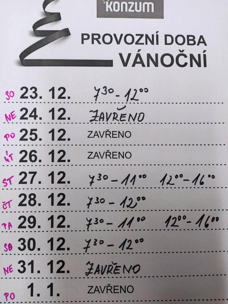 KONZUM - Vánoční provozní doba