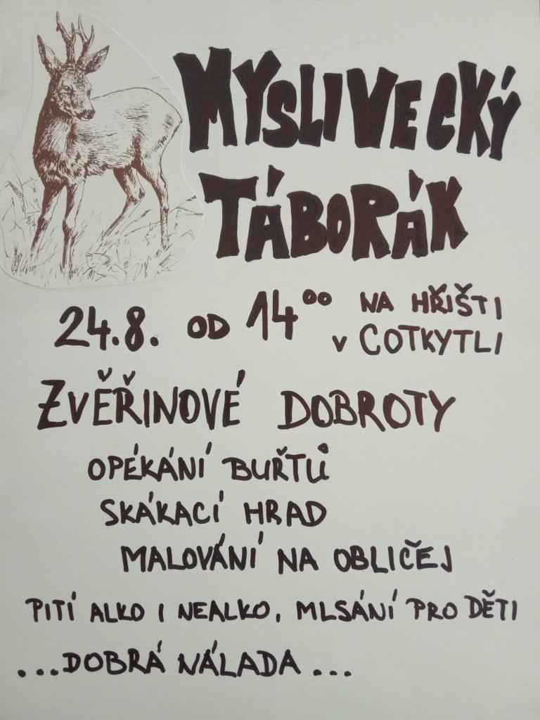 MS Cotkytle Vás srdečně zve na Myslivecký táborák, který se bude konat v sobotu 24.08.2024 od 14 hodin na hřišti u KD.