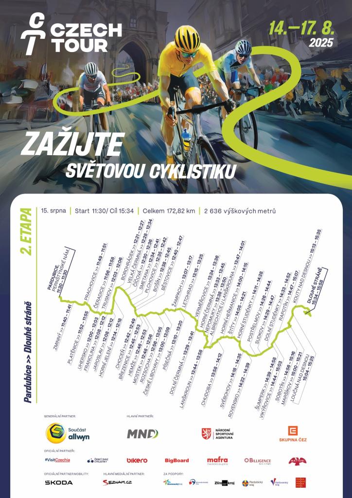 Již dnes odstartuje Czech Tour, nejvýznamnější cyklistický závod v Česku. Letošní 17. ročník přináší v termínu 14.–17. srpna největší změnu ve své historii. Peloton poprvé vyrazí z hlavního města Prahy, zajede do Karlových Varů, Pardubic i na tradiční místa v Jeseníkách a Beskydech. Fanoušci se mohou těšit na závodníky z elitních celků WorldTour a živé přenosy na České televizi a Eurosportu.