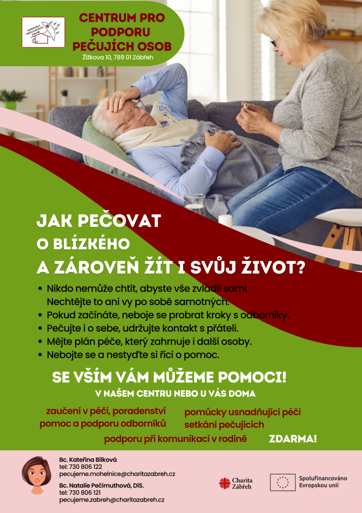 Centrum pro podporu pečujících najdete na adrese Žižkova 10, Zábřeh (tel. Zábřežsko 730 806 121, tel. Mohelnicko 730 806 122). Více informací a kontakty také najdete na facebooku.com/pecuj a na www.charitazabreh.cz.