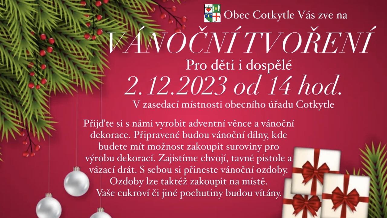 I letos si s námi můžete veškerou dekoraci vyrobit a to 2. prosince 2023 od 14 hodin v zasedací místnosti obecního úřadu Cotkytle.